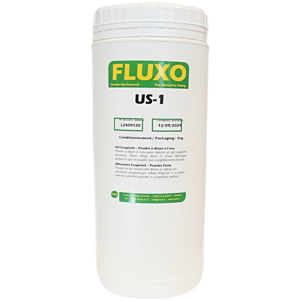 FLUXO US-1 je ultrazvuková vazební látka ve formě bílého prášku, která se smícháním s vodou přemění na žlutý fluorescenční gel. Je navržena tak, aby byla šetrná k životnímu prostředí, netoxická a neobsahovala žádné těkavé organické látky (VOC) ani jiné nebezpečné materiály. Je velmi ekonomická, protože se nanáší jen na pracovní plochu. Mezi klíčové vlastnosti patří vynikající smáčivost a akustický přenos.